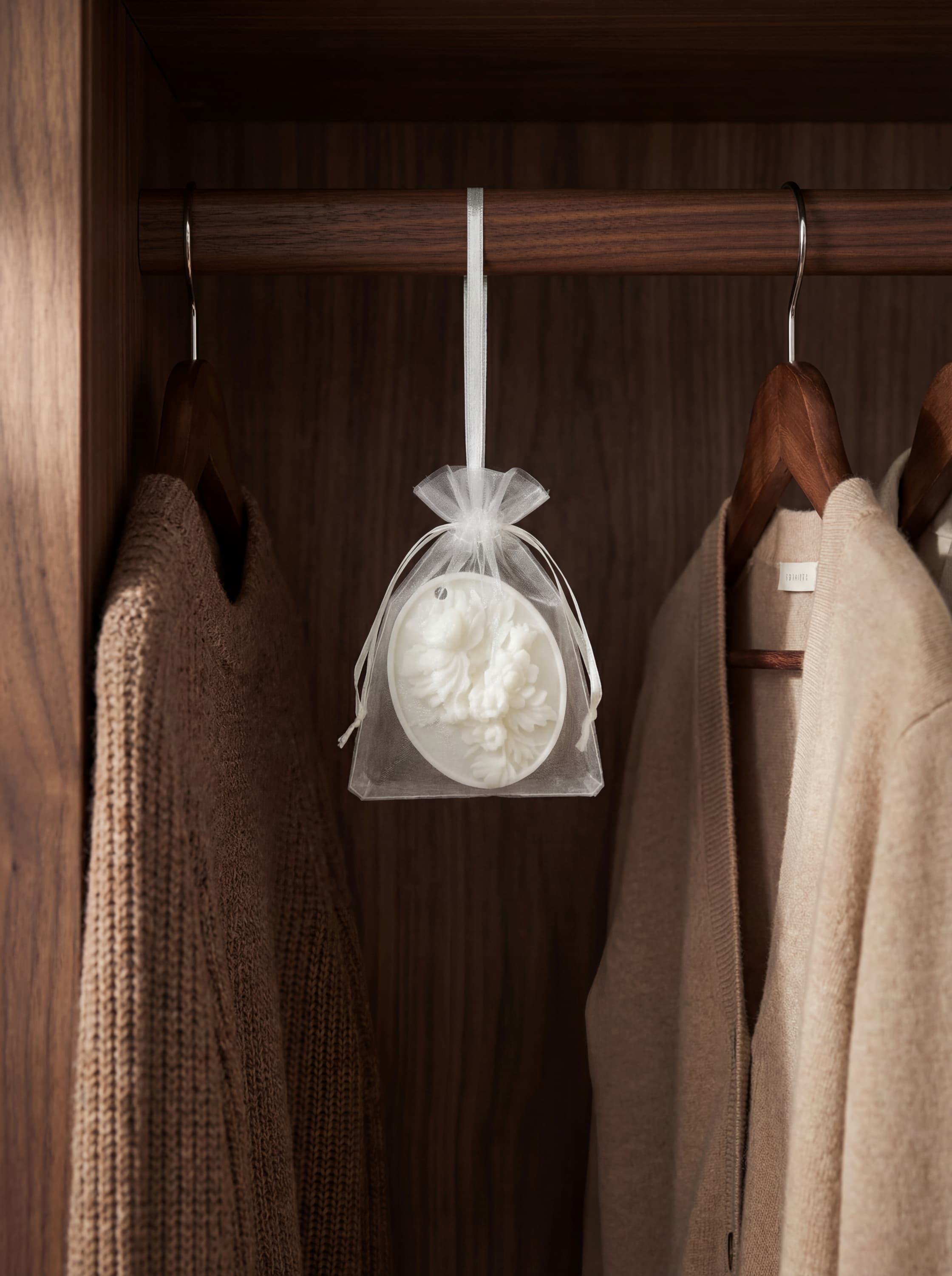Аромасаше для одягу допомагає підтримувати відчуття чистоти та свіжості у вашому гардеробі. Його можна розмістити: