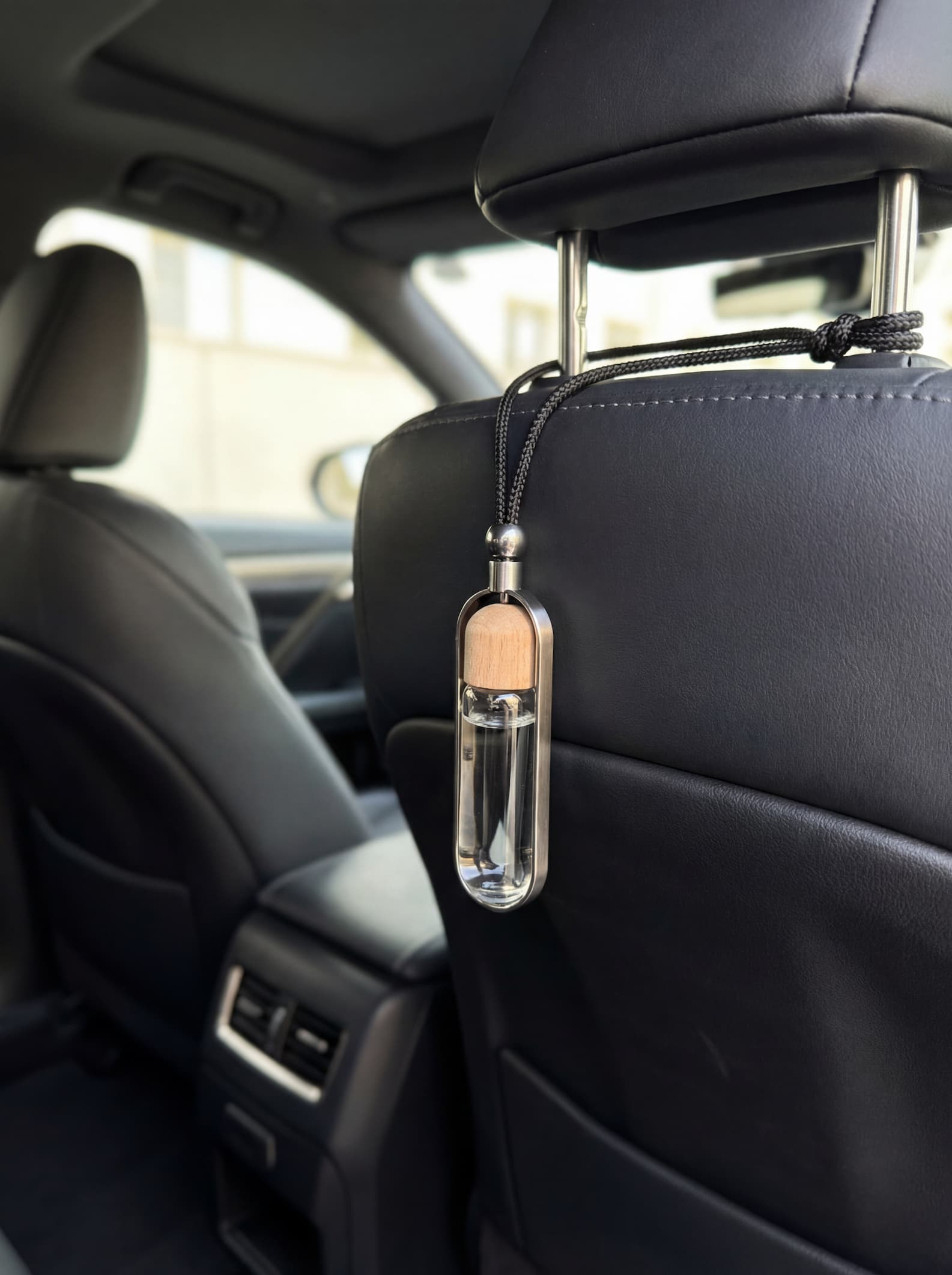 Компактний скляний флакон із дерев’яною кришкою наповнюється ароматичною рідиною та підвішується на дзеркало заднього виду. Під час руху аромат поступово поширюється у салоні, створюючи легкий ароматичний фон без різких або надто інтенсивних нот.